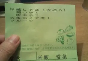 入院中にだされる食事には、 いつもそのときのメニューが記載された